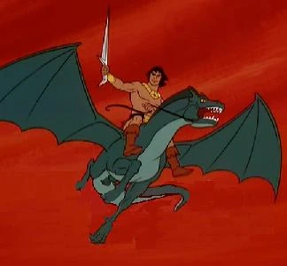 Blackstar is a 1981 fantasy-adventure cartoon from Filmation. A precursor to the far more successful He-Man (only 12 episodes were produced), Blackstar followed the adventures of an Earthly astronaut, the eponymous John Blackstar, and his "allies": Klone, the elf-like ShapeShifter; Mara, the lavender-skinned Magical Girl; Warlock, his dragon-like Cool Steed; and the Trobbits, seven magenta-skinned little men who tended the Sagar tree on which the planet's environment depended — Balkar, their magical leader; the speechless Poulo; Carpo; Gossamer, who flew by means of his huge ears; Burbil; Rif, who talked like Walter Brennan and whose hat was permanently afire; and Terra. All these were in rebellion against the Overlord and his allies, such as the sorcerous Vizier, a horde of dinosaur-shaped stone robots, the Lavaloks, and a series of one-shot villains such as Kadray, the "Time-Lord" (no, not that one).
