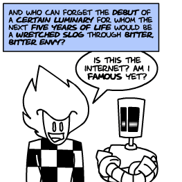 In 2005, the comic came to an end. Then Kris Straub revived it and retooled it as an irregularly-updated, strictly gag-per-day affair; the last strip of this incarnation was posted in 2007.
