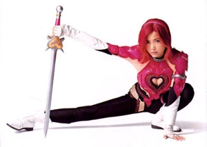 - Fetish Fuel Station Attendant: Sometimes she's a ditzy blonde in a miniskirt. Other times she's a Badass Biker in skintight leathers. Sometimes she's a dominatrix. (And so on.) But the truth behind them all is Warrior of Love, Cutey Honey — a Fiery Redheaded Hot Chick with a Sword!