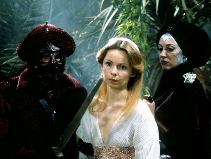 The Doctor being the Doctor, he jumps into the pit with both feet, and soon meets the Creature, and discovers that it is in fact an alien ambassador from the planet Tythonus, whose spacecraft was the egg investigated earlier. Tythonus has lots of metal but not much vegetation, and the ambassador had hoped to organise a trade, and was thrown into the pit for his trouble - Adrasta's stranglehold on metal production is keeping her in power.