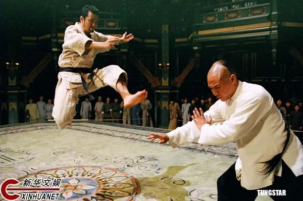 The foreign-controlled Shanghai Chamber of Commerce challenges him to a fight in which he will have to defeat four national champions in a row. He easily defeats the three Western ones, and only the Japanese one turns out to almost be a match for his martial prowess. However, the Japanese diplomat who had co-organized the event poisons Huo's tea, and although the Japanese fighter gracefully admits defeat, Huo collapses and dies moments later.