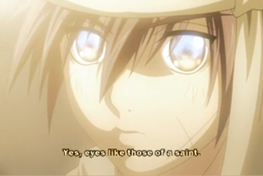 - Train from Black Cat is seen this way (complete with Bishie Sparkle) by his Stalker with a Crush Kyoko, whenever she's imagining or thinking of him.