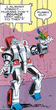 - An early issue of The Transformers comic featured Jetfire saving a falling human by catching him. Several letters were written to Marvel about it, and awarded No-Prizes for spotting the problem.