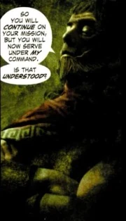 - Holier Than Thou: He seems to be an Expy of Xerxes from 300.