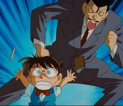 - Pictured above: Kogoro Mouri from Detective Conan yet often punches Conan (in front of authority, nonetheless), throws him across the room, and screams at him. Things from "getting in the way" of his work, to accidentally cutting his foot, to laughing at his stupidity. However, as time passes and Kogoro presumably gets more used to being Conan's Parental Substitute, the gag practically disappears.