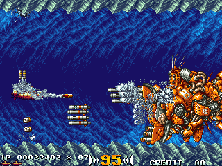- Do Well, But Not Perfect: If you managed to reach the final form of the Final Boss in one credit, you would get the special ending. It's not a happy one. Beating the game on more than one credit gave you the happy ending. Apparently, the boss has a "furious explosion" that destroys your sub should you get the bad ending.