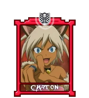 The strongest Bishop of the Chess Pieces. She doesn’t seem to fit with the group due to her happy go lucky and playful personality. She battles Alan in the semi-finals and beats him due to his fear of cats. However, after the match, she begins to idolize him (and in the anime, she falls in love with him). As a result, she doesn’t hesitate to cheer for Team MAR and goes as far as to switch sides after the War Games to be with Alan. It weighs down on her that she will not be accepted into society because of being a former Chess Piece and she does not want what happened to Chimera to happen to her. In the end though, Alan and Chaton settle this problem and hook up. She fights with animal themed ÄR Ms.