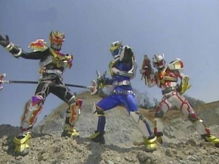A Toku show that aired in 2006. Kenji Narukami comes to the small town of Akebono, where the city's Power Spot is of great interest to the demonic Jamanga. Dr. Worm and an assortment of others send down monsters that defy description in an attempt to gather "Minus Energy" - the negative feelings from people- to revive the Big Bad.
