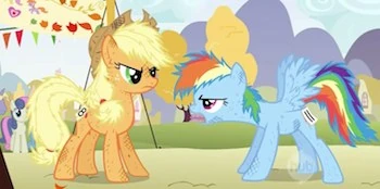 - Worthy Opponent: Even within their extremely aggressive competitive streak, it's obvious AJ and Rainbow Dash see each other as this.