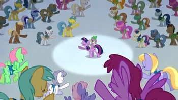 - Crowd Song: Notable as the first song in the series that isn't just sung by Pinkie Pie.