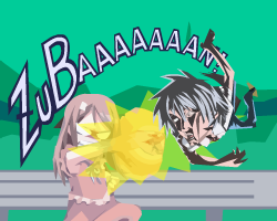 NANACA†CRASH!! (sometimes affectionately referred to as "Zubaan") is a free online game based on the eroge CROSS†CHANNEL. It's about running into a boy (Taichi Kurosu) with a bicycle. The object of the game is to keep him flying in the air. If he stops, the game is over.