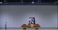 - Parodied in Austin Powers: International Man of Mystery. As the protagonists escape on a very slow Road Roller, a lone security guard screams in terror as the roller approaches and proceeds to scream "STOOOOOP!!" multiple times as it approaches, making no attempt to move to the left or right until finally being run over.