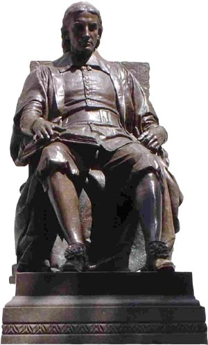 A universal trope, spotted as often in reality as it is in fiction. Our Founder is a statue of the Founder of the Kingdom... be they a brave pioneer who established a colony in the New World, a missionary traveling the land building communities for his faith, a conqueror on his way to fame and riches, or a big-shot mogul who struck Big Business and got a nice-size stone replica of himself for his efforts. These are often to be spotted at crossroads, communal plazas downtown, or at parks, with some nice benches with old ladies feeding pigeons on them.