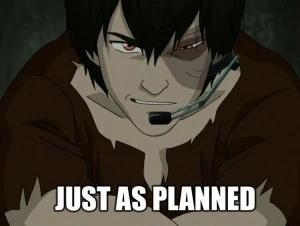 - In "The Boiling Rock", Zuko gives one of his own after unbolting the cooler. Looking kinda Light Yagami there, Zuko. Though oddly this is the only time he makes one and it's after he does a Heel Face Turn.