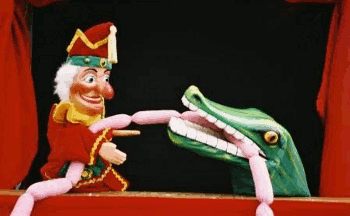 - Hand Puppet: All of the characters, except the baby, though originally marionettes.