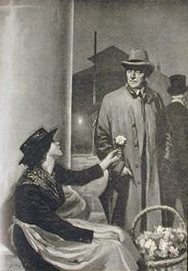 We open on a crowd sheltering from the rain in a church porch. Among them are an impoverished aristocratic mother and daughter, the Eynsford-Hills (who dispatch Freddy, the son of the house, to secure them a cab); Colonel Pickering, a student of Indian dialects; and Professor Henry Higgins, a professional linguist. These are joined by Eliza Doolittle, a Cockney flower-girl (nearly knocked over by the departing Freddy), whom Higgins repeatedly startles, first by taking down her speech in phonetic writing, then by declaring to Pickering (whom he has invited to his home) that he could teach her to speak proper English, and finally by presenting her with a great deal of money — which she uses to commandeer the taxi which the feckless Freddy has brought for his already departed family.