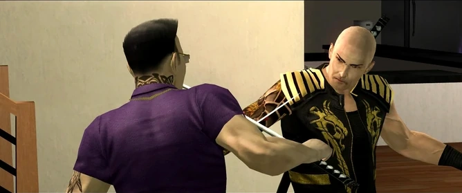 - In the opening cutscene for Bleeding Out, the Boss and Gat fight Jyunichi and about a dozen Ronin. Johnny impaled by Jyunichi by a katana, only to slam the enforcer on both sides of the head with his fists, stunning him while the Boss reloads their pistol. Jyunichi barely escapes with his life.