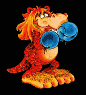 - Half-Dressed Cartoon Animal: Schindel-Schwinger only wears his boxing gloves.