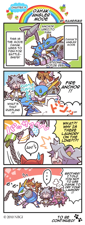 In the game, you play as Red Savarin and gameplay focuses on controlling his Mini-Mecha, DAHAK-AZI03, or simply DAHAK. The combat usually involves picking things up and throwing them at enemies. The DAHAK is also customizable, with different armor types made for different combat situations (speed, defense, power, etc.). The game also boasts a large selection of side-quests which help flesh out the world the player is in and various mini-games, including airship racing and giant hermit crab fishing. Notable for being absolutely gorgeous for a DS game and having 100 different advertisements made for it aired on the 21st of October in a successful attempt to break a world record. Also, Yoshitake Taniguchi of Super Robot Wars fame was in charge of the Mini-Mecha designs.