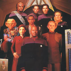 The main cast of Deep Space Nine: Worf, Bashir, Jadzia Dax, Quark, Jake, O'Brien, Kira, Sisko, Odo. Not pictured: Ezri, Nog, Rom, Leeta, Garak, Dukat, Winn, Bareil, Keiko, Molly, Damar, Weyoun, Gowron, Martok, Ziyal.