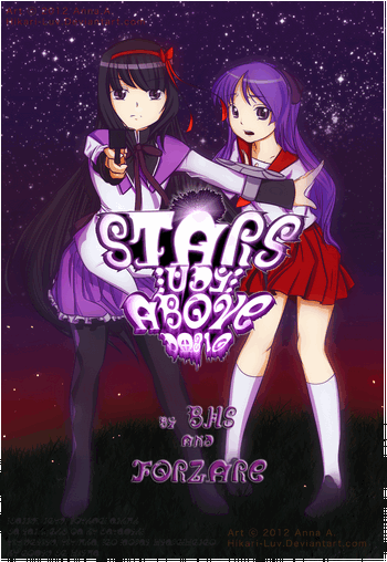 Stars Above is an ongoing fanfic written by Tropers BHS and User:Forzare. Based loosely on the events of the KHSWO RP on the TV Tropes Forum, the story is a Puella Magi Madoka Magica/Lucky Star Intercontinuity Crossover.