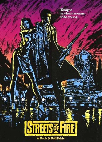 From Walter Hill, the director of The Warriors and Forty Eight Hours, Streets of Fire is a 1984 film, described as a "Rock'n'Roll Fable". Its setting is a kind of Alternate Universe, a mix of an over-the-top 50s and a dystopian near-future as seen from the 80s; a card in the opening title sequence tells us it's set in "another time, another place." The charm of this film lies in its darkly beautiful shots with lots of shadow and smoke and piercing colors, the comic-book style storytelling, and fantastic music, and it is especially popular in Japan, despite having no initial success, commercially or critically. Notably, Bubblegum Crisis and Final Fight were influenced by this film.