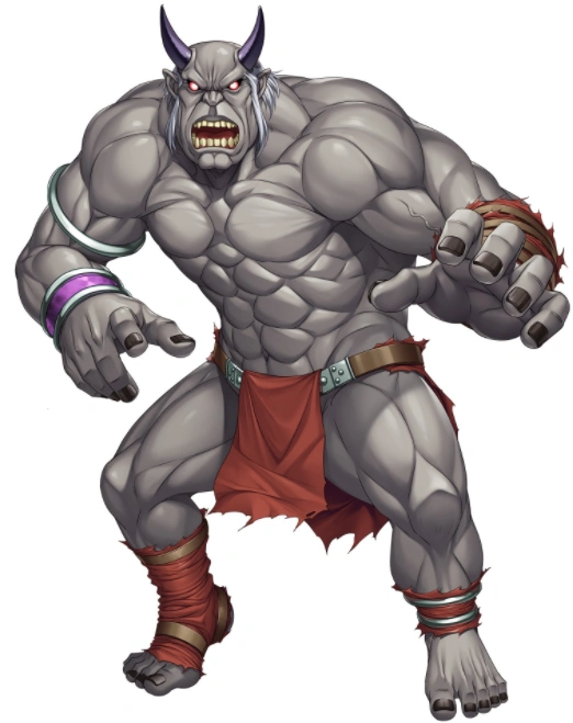 Big Gogo, or just Gogo for short, is an ogre bondsman who fights in the Chaos Arena. Until facing Sakura, he boasted four straight wins and later became well-known for defeating female contestants.