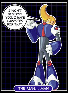 - Used as a "Rejected Mega Man Villain" in the Web Comic Dueling Analogs, as seen in the pic.