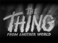 While Hawks' actual role in the film's production has long been debated, The Thing exhibits his trademarked overlapping dialogue and assertive female characters who neither scream, faint or becomes hysterical at any point in the proceedings. All screaming, fainting and hysteria is supplied by the male cast - and with good reason. The script is a quick patter of wisecracks and one-liners that keep the plot moving at breakneck speeds.