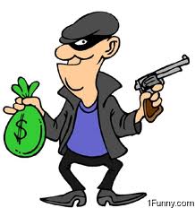 "What makes a criminal a criminal? <pause>The black mask, the stripy shirt, and the bag marked 'swag'" |