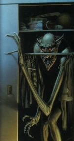 - Stephen King did a short story called The Bogeyman (published in the collection Night Shift) about a grown-up who tells his psychologist about the closet-dwelling entity which killed his children, one by one. (Or rather what he thinks is his psychologist...) This trope is also visited in a subplot in King's novel Cujo.