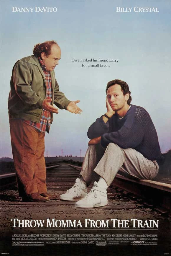 Throw Momma From the Train is a 1987 Black Comedy directed by Danny DeVito in which writer Larry Donner, suffering from severe writer's block, meets writing student and simpleton Owen Lift. Larry is wracked with jealous rage over his ex-wife Margaret, who stole his book and with it, became a world-famous author. Owen, after being instructed by Larry to see some Hitchcock films to help him learn how to write murder mysteries, thinks Larry was sending him a message to exchange murders after he chooses Strangers on a Train: Owen is to kill Margaret, and Larry is to kill Owen's monstrous mother. Larry becomes entwined with the idiot "couch potato" as he is on the lam from being a major suspect in Margaret's murder, since Owen failed to tell him of his intent and didn't allow Larry to create an alibi.