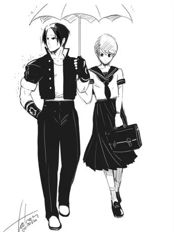 - Pictured above: A The King of Fighters illustration by Falcoon has Kyo Kusanagi and his girlfriend Yuki sharing an umbrella.