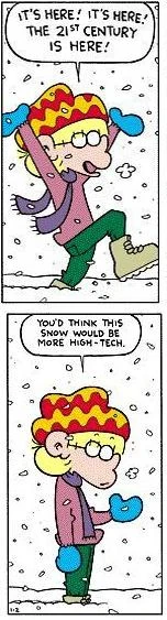 And speaking of blogs, this was also the time in which the internet really became a part of society at large, instead of being limited to computer geeks and Usenet groups. Everyone got connected, with many people owning media storage devices, have access to the internet, etc. If you didn't have a computer with internet access, you were left behind. Technology was always getting better and less expensive via Moore's law, and you can walk into a department store and buy a computer which was at least a million times more powerful than the ones that put man on the moon. Video Games finally started to gain mainstream recognition, especially near the end of the decade, with the release of the Wii. Games became Darker and Edgier, with much more mature storylines and realistic plots, although how mature and realistic they are is subject to debate (some see it as a repeat of The Dark Age of Comic Books). Meanwhile, the sports gaming industry was effectively monopolized by Electronic Arts, to the horror of some.