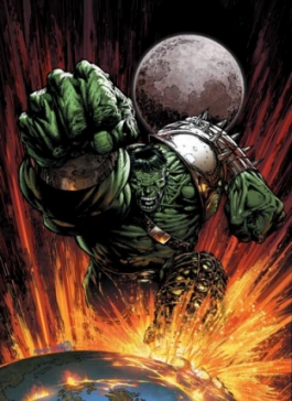 - One version had it that Iron Man's nuclear strike to subdue Hulk ended up wiping out most of the heroes, one of them being Skrull Queen Veranke (under the guise of Spider Woman), causing the Skrulls to view Hulk as some sort of prophet of their upcoming invasion. When Secret Invasion kicks in, even more heroes die, but Hulk wises up and joins the resistance against Skrull... and then it turns out Wasp was being impersonated by the Skrulls rather than Hank Pym, and then plants the human bomb serum to Hank, again, wiping out almost all heroes and humanity... except Hulk. When Silver Surfer visits, Hulk demands that Galactus wipe out the Skrull planet as his vengeance, and after being left all alone again, Galactus promotes him as his Herald.